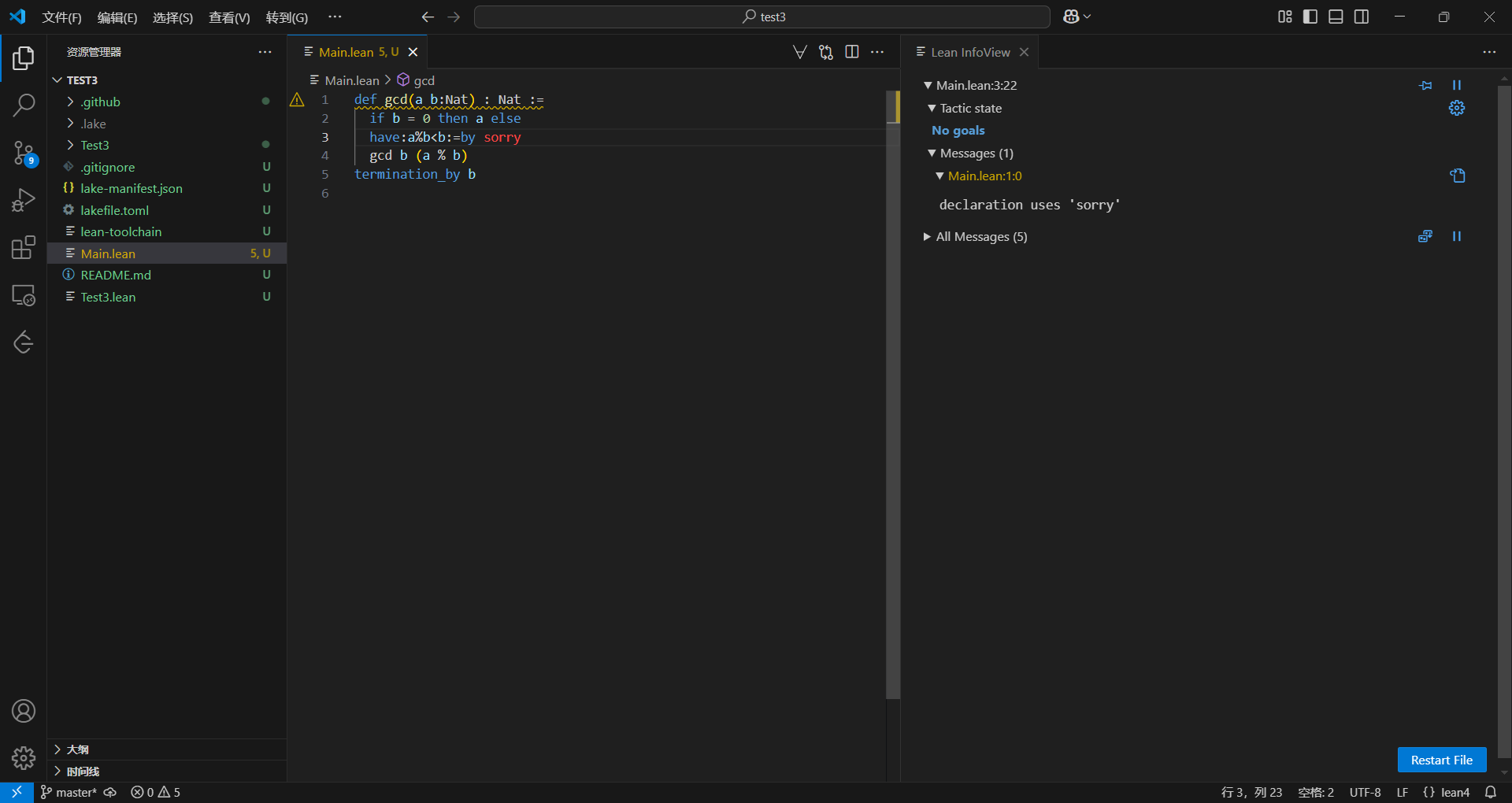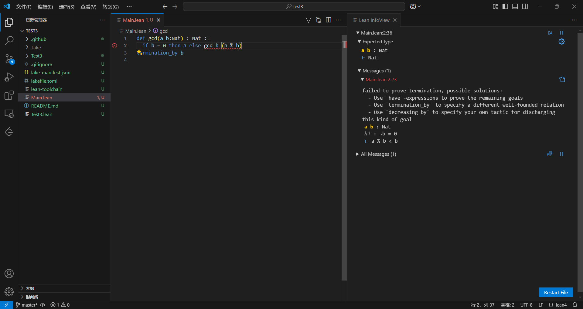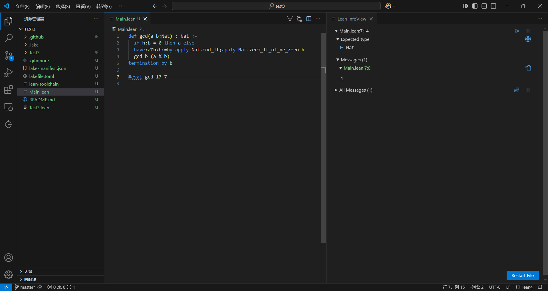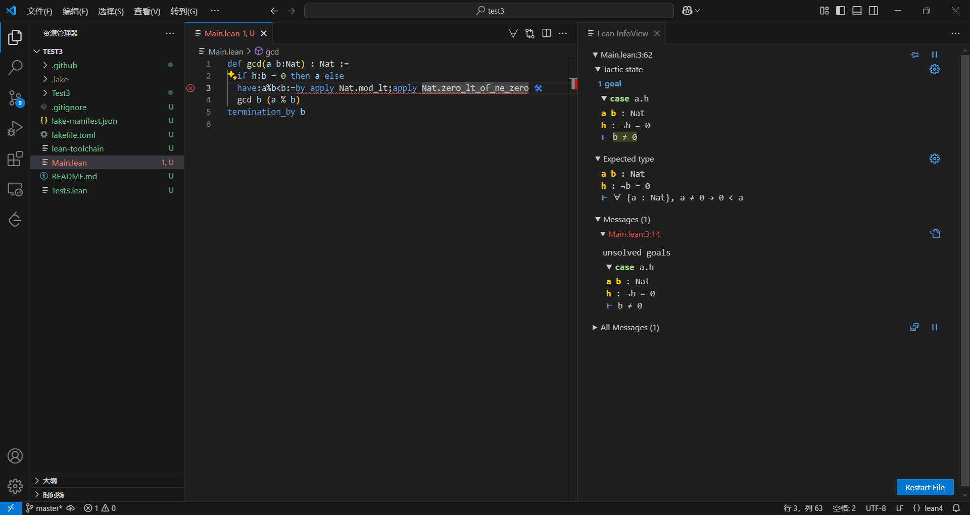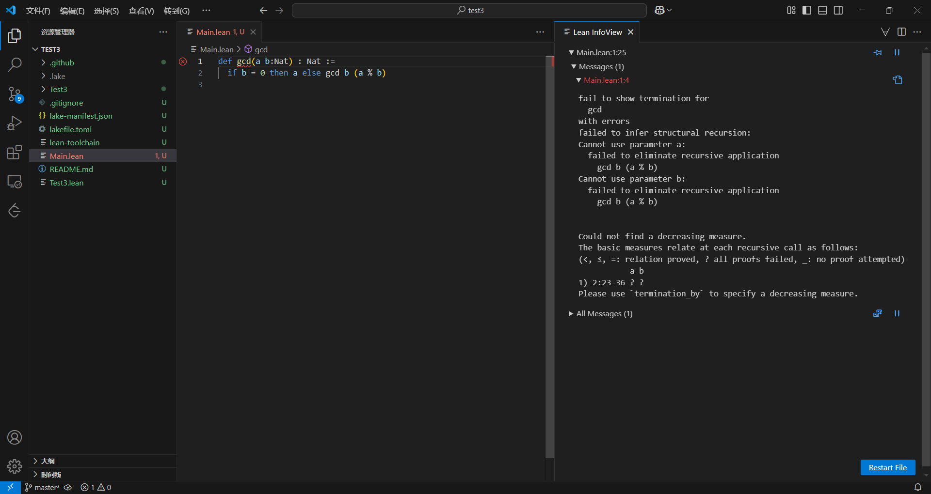 安装完lean4,当然要试着用一下,由于我也快两年没碰算法了,所有算法几乎都忘完了,就只记得GCD了,所以就写个GCD吧。某种程度上选择GCD说不定刚好,够经典,够简单,够数学。