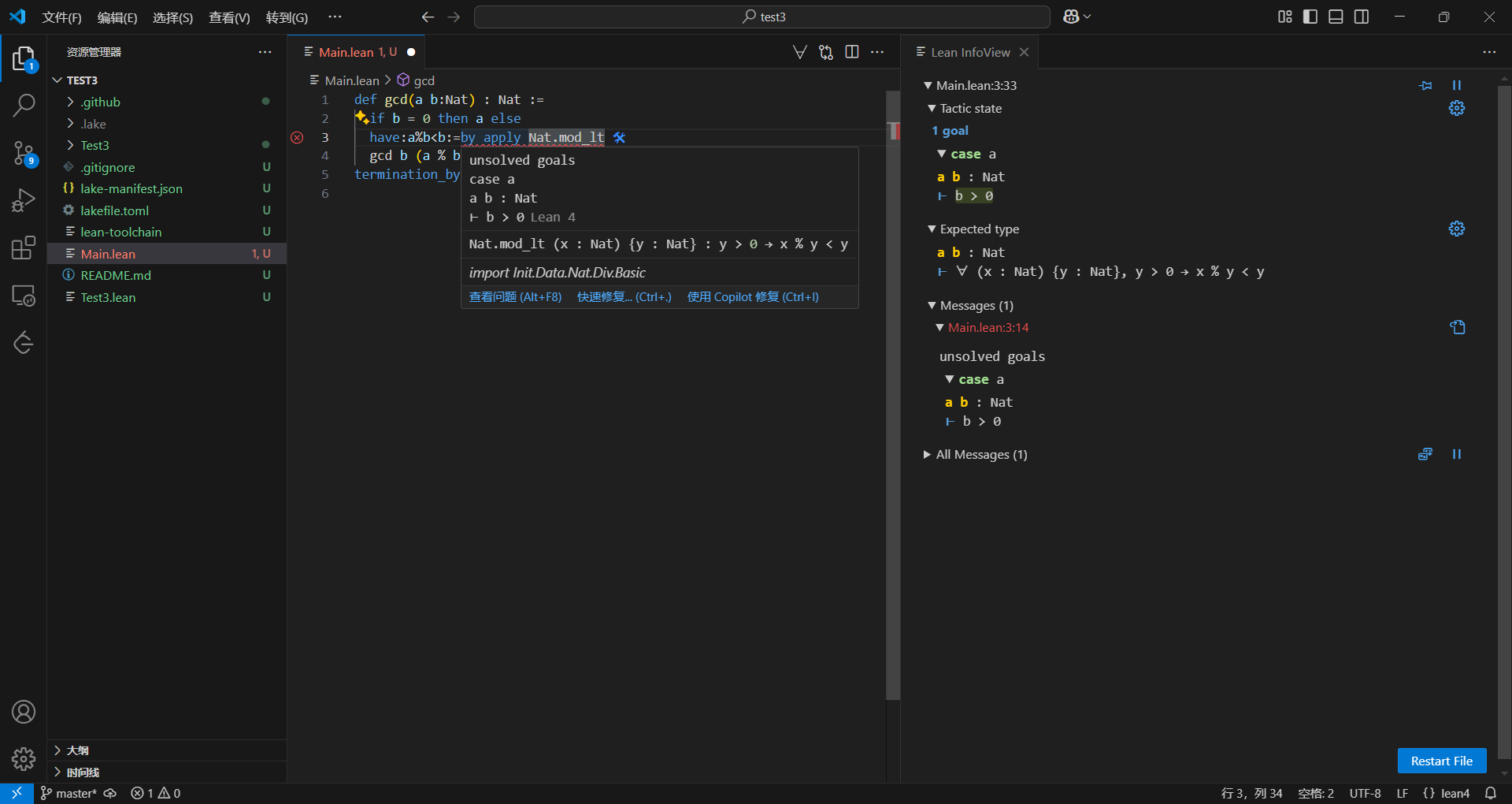 lean4编写gcd